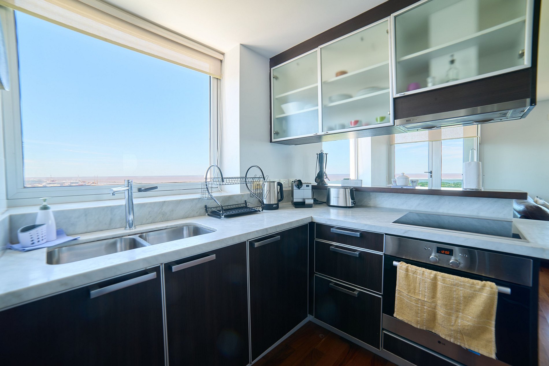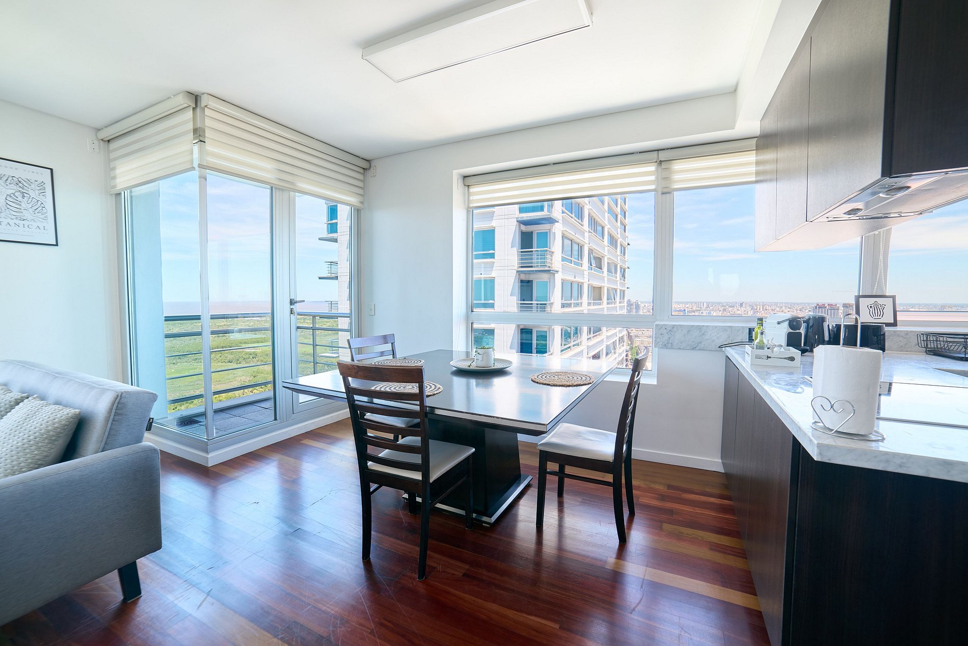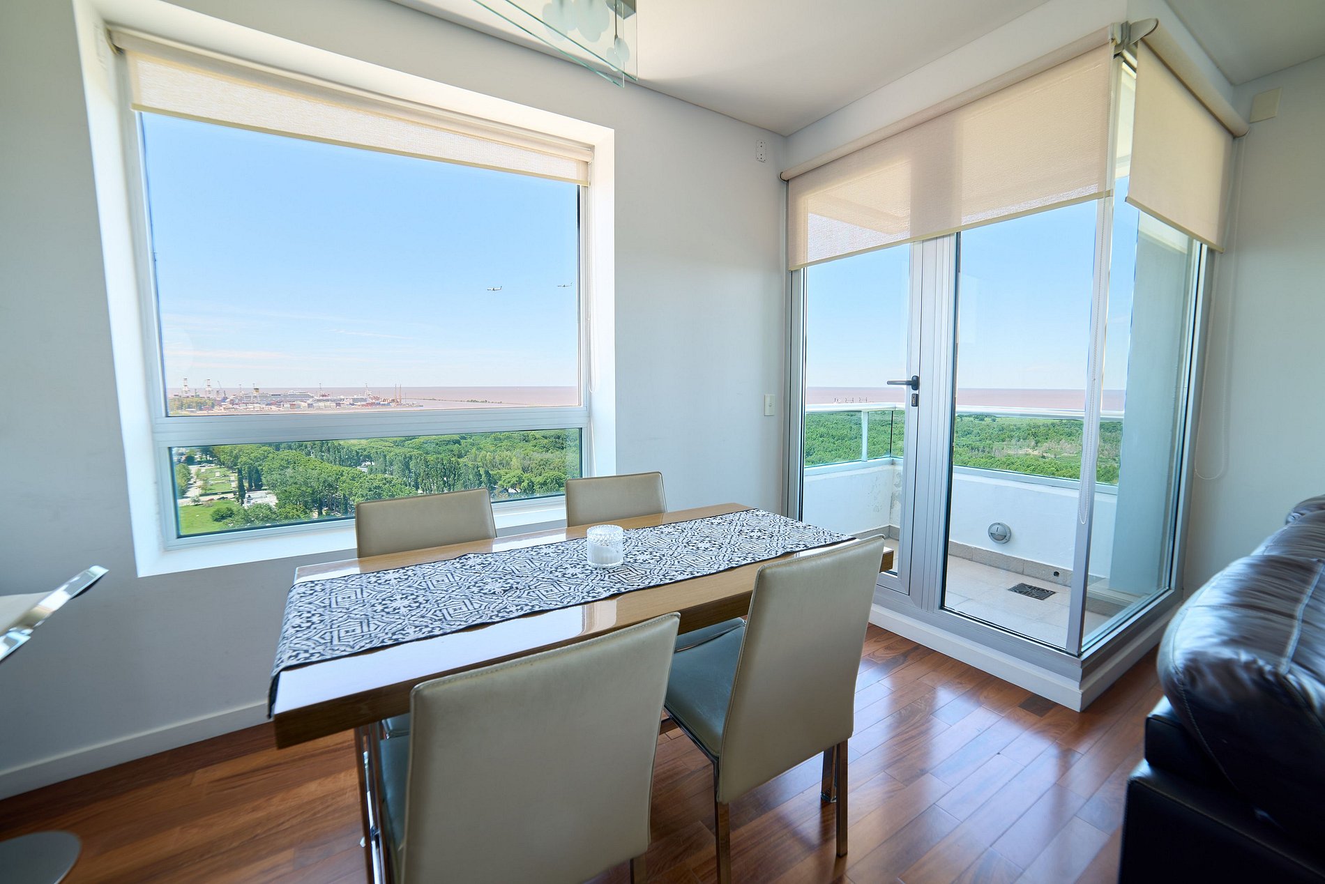 Enjoy this incredible lodging located in the luxurious Torres del Yacht complex, in the most modern zone of Buenos Aires. The living room has a double sofa, individual armchair, table with four chairs, TV with premium cable. It also has a very well-equipped kitchen, a practical toilet, and a balcony with views of the river and the city. Its bedroom has a king size bed, complete suite bathroom, with hydromassage and dressing room with safe. The air conditioning accommodation: - Two hot/cold air conditioning units, one in the living room and the other in the bedroom. - The main bathroom has a heated floor. Kitchen equipment: - refrigerator with freezer. - electric stove. - electric oven. - microwave. - electric kettle. - bread toaster. - nespresso coffee machine. - glassware, crockery and cutlery for four people, pots, pans, table, etc. - Iron and ironing board. - hairdryer. Building amenities: - Two swimming pools, a 150 sqm main pool and a 25 sqm children's pool, both surrounded by a large solarium (open from 9:00 a.m. to 11:00 p.m., only in the summer season - November-March). - laundry, from 6 a.m. to 11 p.m. (located on the -2 floor of the north tower, with machines that operate with tokens, with additional cost). - Two large gyms with excellent machines (one on the mezzanine floor of the north tower and another on the mezzanine floor of the south tower). Guest access: The complex is located in Puerto Madero, Buenos Aires, Argentina. Puerto Madero is one of the most exclusive, quiet and safe zone in the city of Buenos Aires. You will find a great gastronomic offer, shops and supermarkets, as well as large parks and museums. We recommend visiting: - Museo Fortabat. - Faena Art District. - Reserva natural de Buenos Aires. Restaurants: - La Parolaccia. - Cabaña Las Lilas. - Lupita. - Sushi itamae. - Sandy dely. - Mercado fresco.
